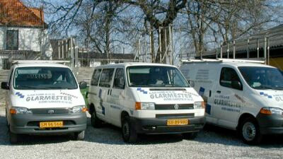 Virksomheden har flere servicebiler og tilbyder døgnservice for akut reparation af diverse glasskader - f.eks. ved indbrud eller stormskade.
